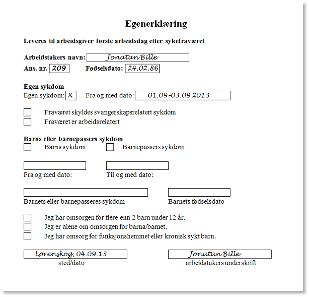Ønsker du å kjøpe forsikringen må du fylle ut egenerklæring om helse. Vennligst fyll ut opplysninger om nærmeste pårørende navn slektskap telefonnummer mine nærmeste pårørende kan få informasjon om min helsetilstand. 62 om og arbeidsmiljø, arbeidstid og stillingsvern mv. 2 (produksjon) status endret : • er besetningen pålagt restriksjoner av mattilsynet?